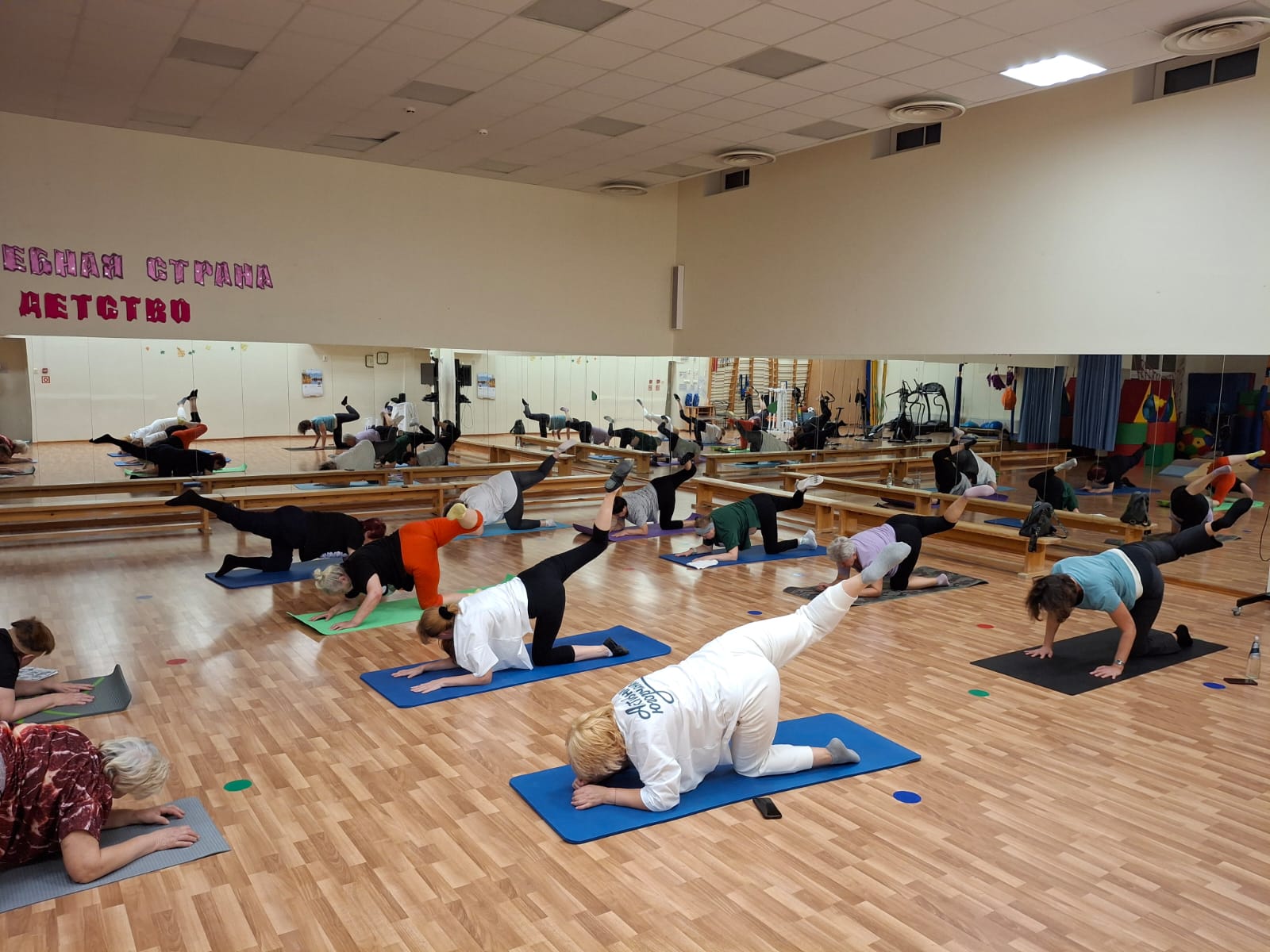Участники с энтузиазмом выполняли все упражнения, стараясь почувствовать каждое движение и сконцентрироваться на своих ощущениях. В зале царила атмосфера взаимоподдержки и позитива, что способствовало созданию благоприятной обстановки для занятий.