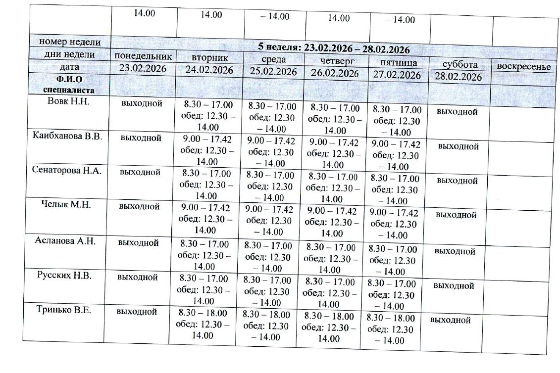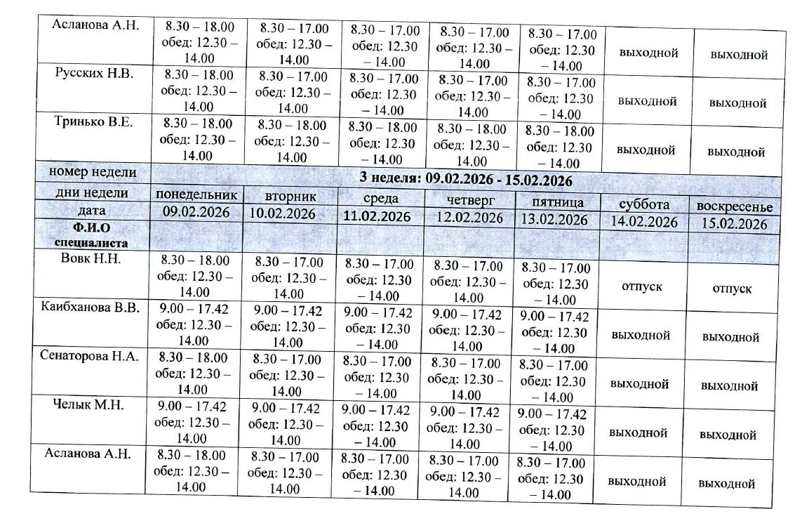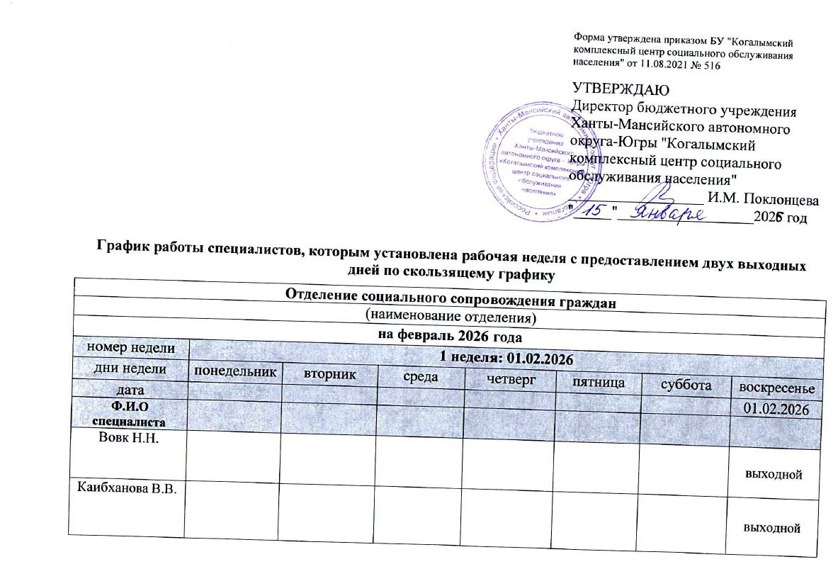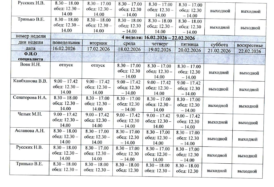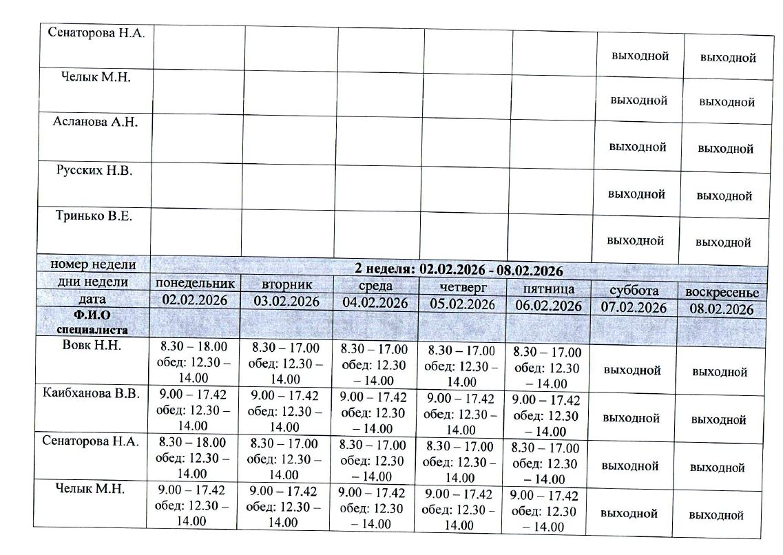 ГРАФИК РАБОТЫ СПЕЦИАЛИСТОВ ОТДЕЛЕНИЯ СОЦИАЛЬНОГО СОПРОВОЖДЕНИЯ ГРАЖДАН
