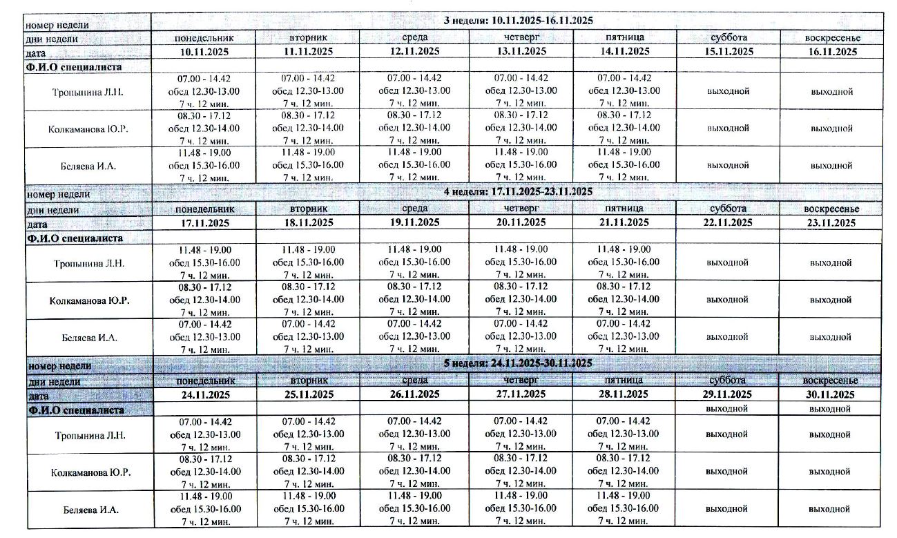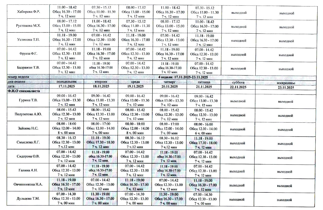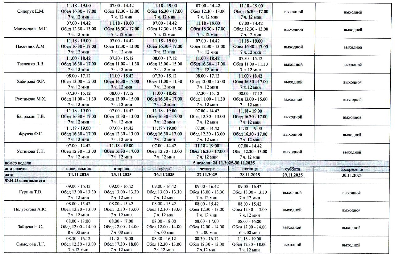 ГРАФИК РАБОТЫ СПЕЦИАЛИСТОВ ОТДЕЛЕНИЯ СОЦИАЛЬНОЙ РЕАБИЛИТАЦИИ И АБИЛИТАЦИИ ДЕТЕЙ С ОГРАНИЧЕННЫМИ ВОЗМОЖНОСТЯМИ