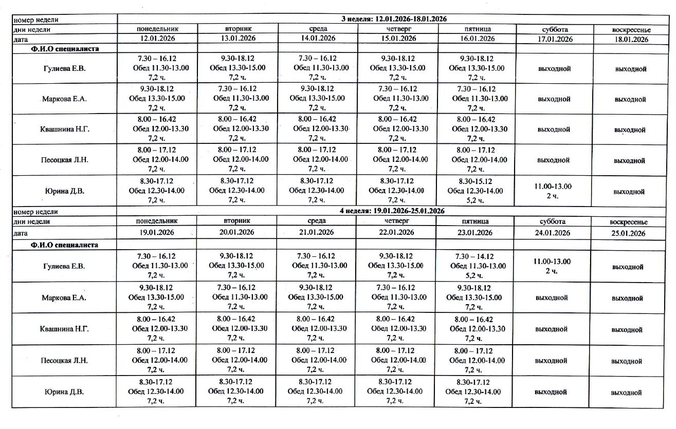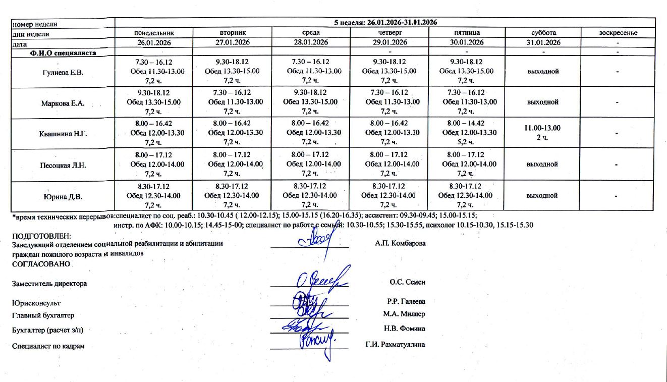 ГРАФИК РАБОТЫ СПЕЦИАЛИСТОВ ОТДЕЛЕНИЯ РЕАБИЛИТАЦИИ И АБИЛИТАЦИИ ГРАЖДАН ПОЖИЛОГО ВОЗРАСТА И ИНВАЛИДОВ